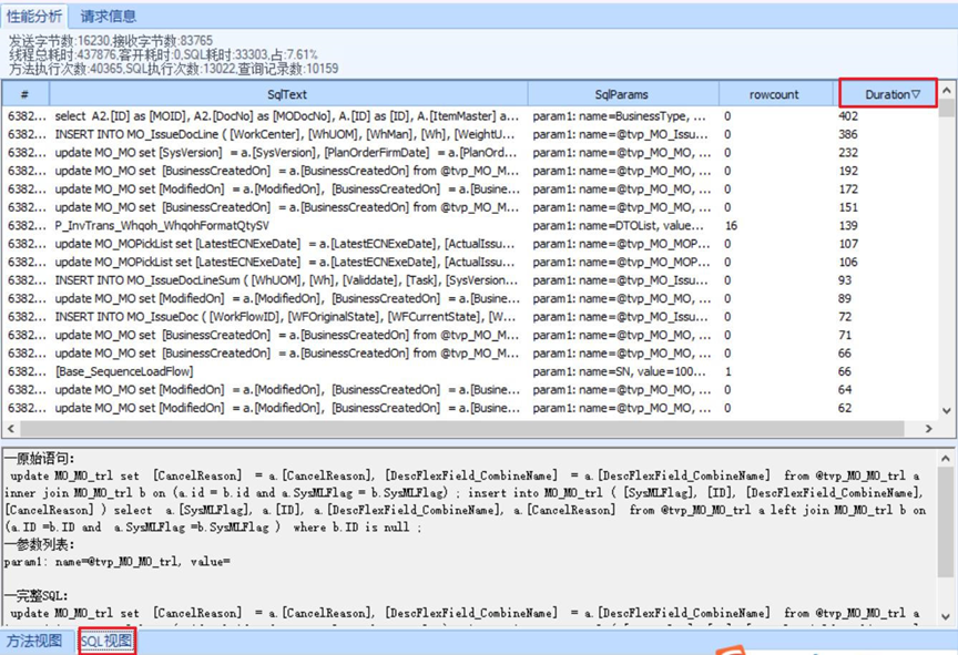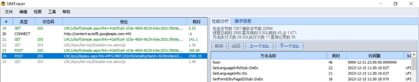 综上因素,导致性能问题的处理时间,大部分消耗在了问题重现及环境搭建上。因此U9 自己开发的一个效率分析工具,包含对代码执行方法、调用 堆 栈 及 SQL 的 抓 取 及 时 间 统 计 。